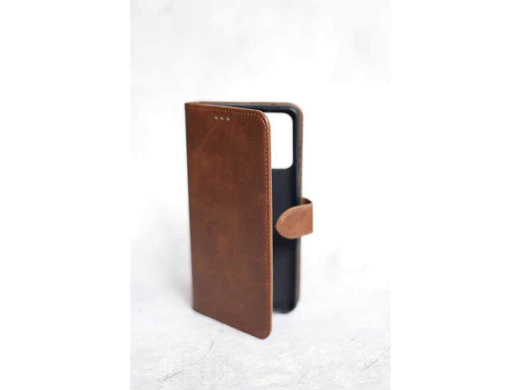 Kožený kryt, který ochrání Váš mobil i proti poškrábání displeje, uvnitř prostor např. pro kreditní kartu, lze jej využít také jako stojánek, magnetické dovírání.